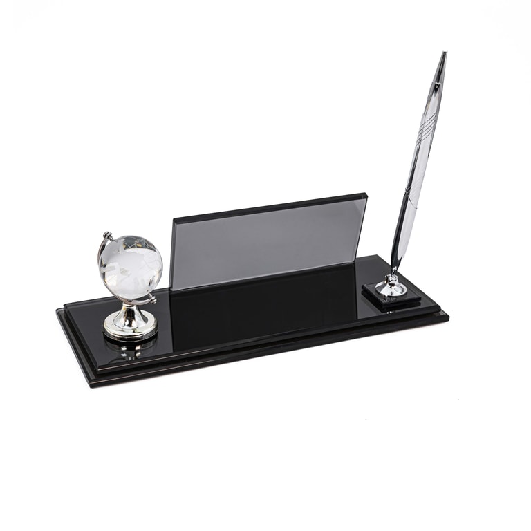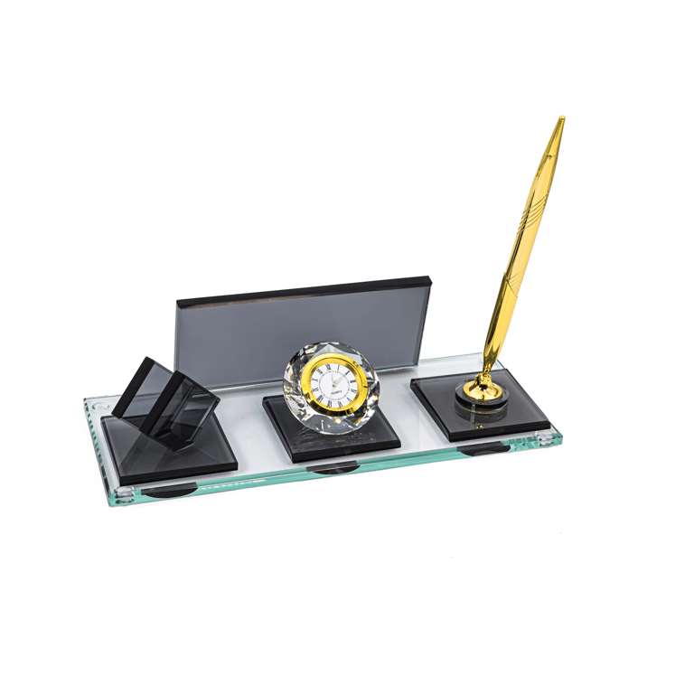 Çift Kalemli Saatli Kristal Masa İsimlikleri
